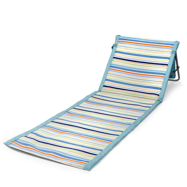 Picnic time thick padded beachcomber portable beach mat. The beachcomber is for those who enjoy the outdoors and like to be out in it. Fully padded with adjustable reclining backrest the beachcomber allows you to stretch out your legs over a durable polyester mat sparing you from messy sand or bug infested grass. Beachcomber lightweight durable polyester portable beach mat for relaxing days at the shore by oniva a picnic time brand features a sturdy steel frame with fully padded body and adjustable reclining backrest allows you to stretch out includes a generous zippered pocket for personal items and adjustable shoulder strap for easy transport. Stretch out comfortably at the beach or the park with the picnic time beachcomber portable beach mat.